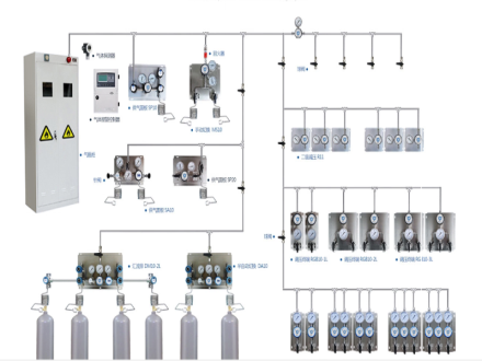 2.氣瓶間內設立一次調壓面板,其中二托一面板帶吹掃銅鍍鉻面板4套。